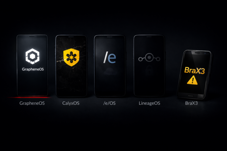 If you’ve started researching deGoogled phone operating systems, you’ve probably already found yourself in a rabbit hole of options, technical comparisons, and YouTube videos that all seem to contradict each other. GrapheneOS. CalyxOS. /e/OS. LineageOS. BraX3. Each claims to be a legitimate deGoogled phone operating system. They’re not all equal Some bloke online telling you they’re all basically the same. They’re not.